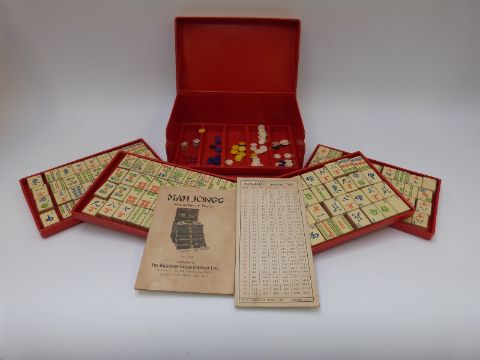 A boxed wooden Mah-Jong set
