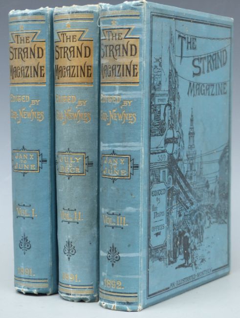 A. Conan Doyle Adventures of Sherlock Holmes serialized in The Strand Magazine January 1891 to June 1892, George Newnes in 3 volumes, illustrated and bound in original publisher's blue cloth decorated in black and gilt - first appearance of the Sherlock Holmes stories