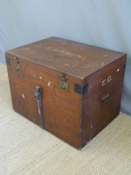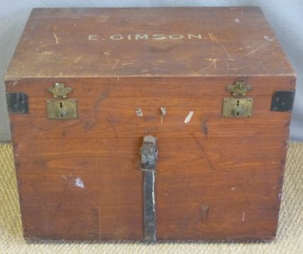 A late 19th / early 20thC silver or travelling trunk with brass locks bearing the name E Gimson, W84 x D61 x H62cm