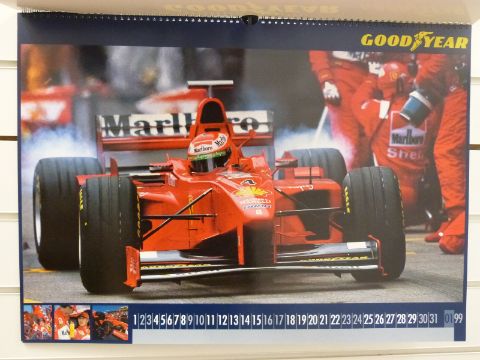 Two Goodyear calendars, a 1993 Pirelli calendar and a framed Eagles Tyres advert