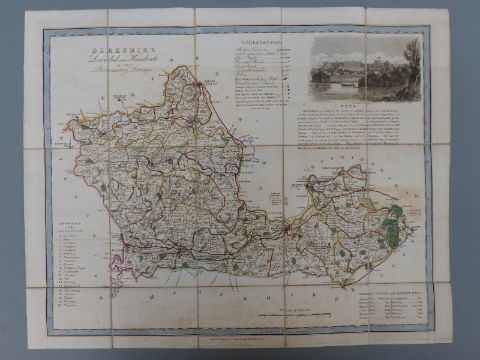 A 19th century map Berkshire Divided into Hundreds and the Parliamentary Divisions cloth backed map with coloured highlights and cartouche of Windsor Castle, printed by William Darton and Son, Holborn Hill, 48 x 37.5cm
