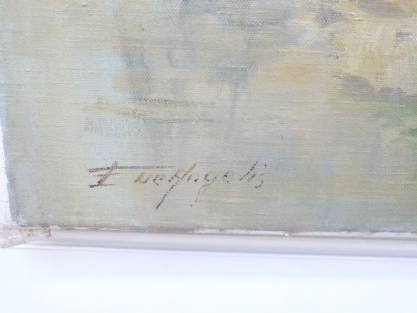 E B de Angelis oil on canvas possibly Turkish or Greek fishing village, signed lower left, 51 x 70cm