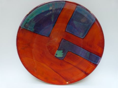 A large Poole pottery charger decorated with a geometric design, 40cm diameter