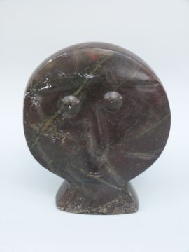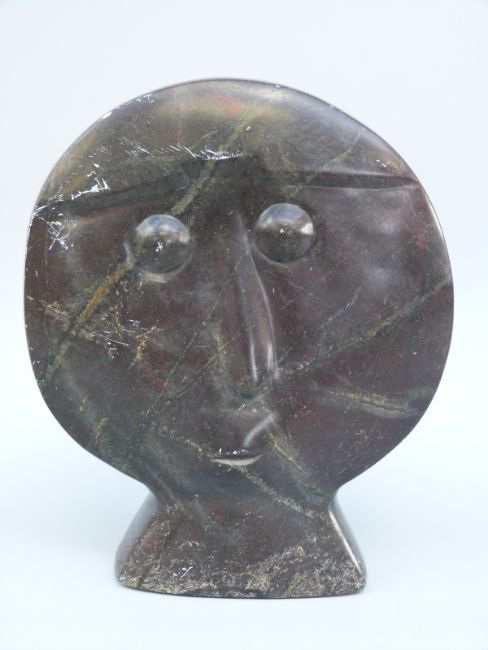 Endronce Rukodzi (1952 Zimbabwe) Shona soapstone sculpture stylised bust of circular flattened form, signed to base, H18 x W15cm