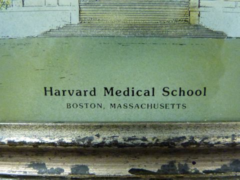 Harvard Medical School reverse painted on glass, 16 x 29cm