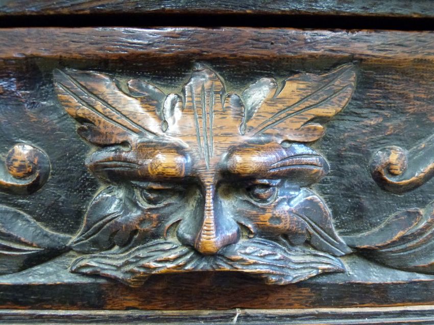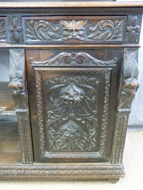 A 19thC carved oak sideboard with two drawers above shelves and cupboard, W122 x D54 x H131cm