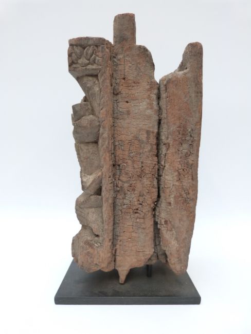 A 19thC Napalese carved wooden fragment on stand, 31cm tall