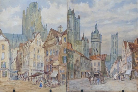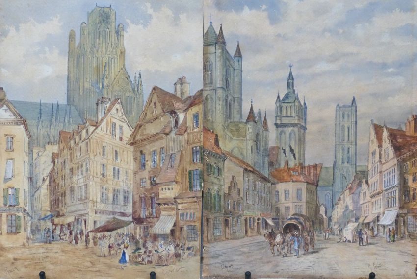 G Colville (1887-1970) two watercolour street scenes, one Rouen the other Ghent, both signed and titled to lower edge, 36 x 27cm