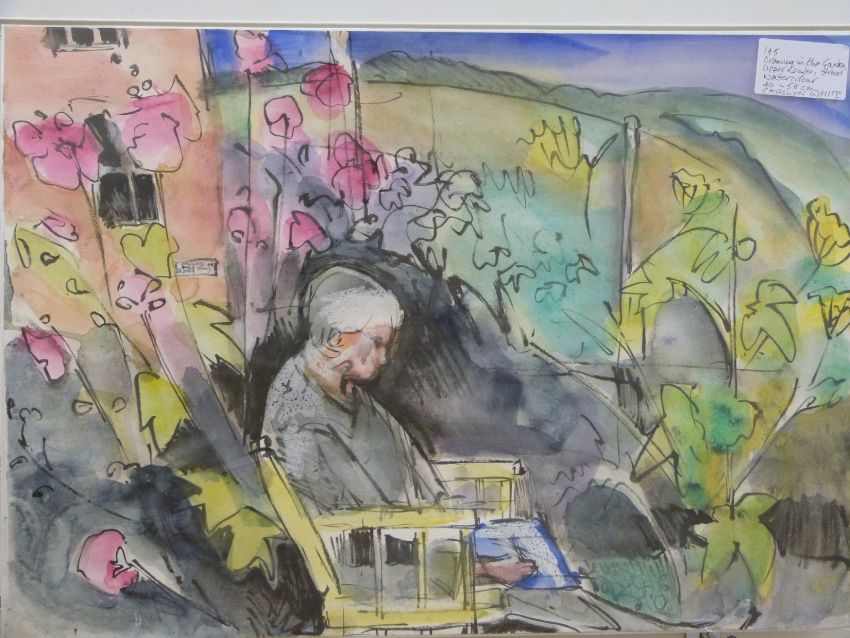 Carolyn White (1945-2013) watercolour 'Drawing in the Garden, Upper Leazes, Stroud', 40cm x 58cm (145)