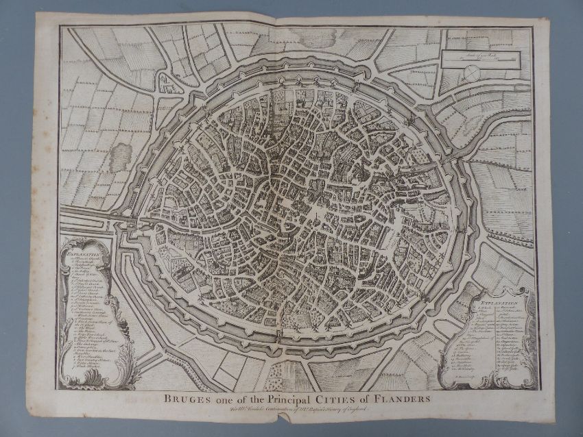A coloured map of Holland, possibly 17thC, together with a map showing the layout of Newport, a seaport town in Flanders and an early map of Europe, 48.5 x 57.5cm