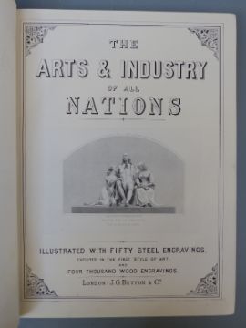 The Arts And Industry of All Nations or Pictorial Gallery of Arts illustrating the Progress in Painting, Sculpture, Architecture, Agriculture etc Edited by Charles Knight with 50 steel engravings and 4,000 illustrations on wood, J.G. Button in 2 volumes bound in red cloth with gilt decorated spines and covers
