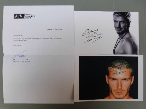 Sporting autographs / signed photographs including David Beckham, Frank Bruno and signed football and rugby programmes
