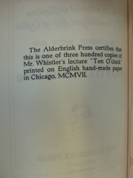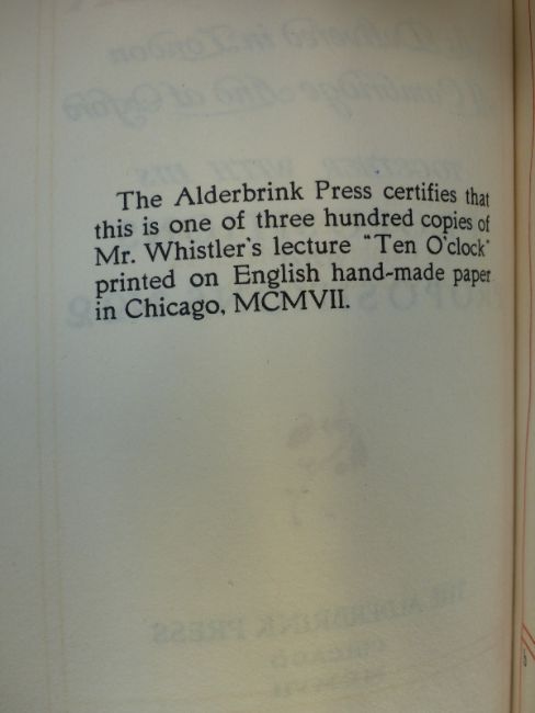 Charles Ricketts Illustrated Catalogue of the Works, limited to 50 signed copies with Mr. Whistler's Ten O'Clock, 1907 one of 300 copies on handmade paper (2)