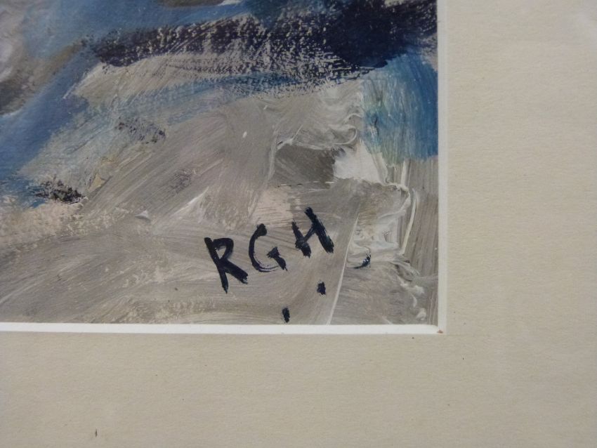 Impressionist oil on board of sailors overlooking a beach, monogrammed RGH lower right, 32cm x 34cm