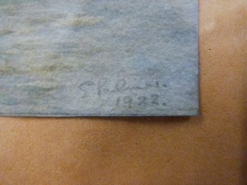 S Palmer watercolour with label from vendor The Camber Casabet, Portsmouth, signed and dated June 1922 lower right, 18cm x 25cm
