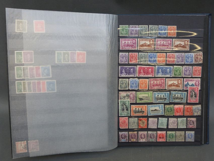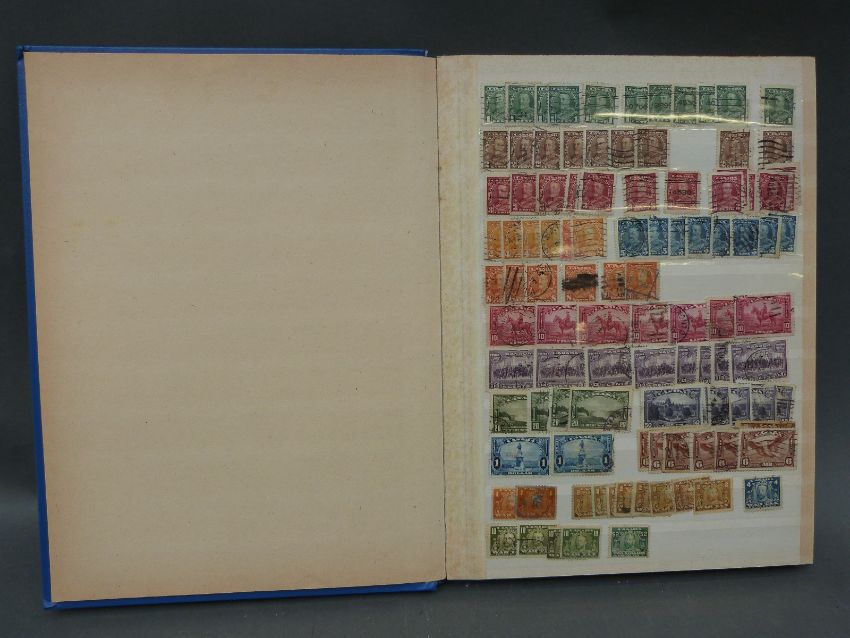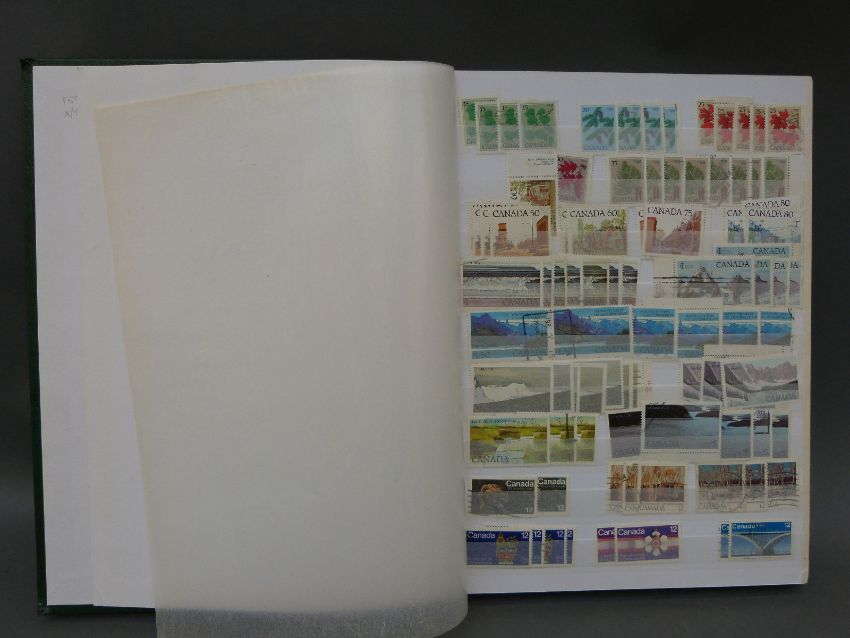 Three stockbooks of Canada stamps and one stockbook of mixed Canada, St Lucia etc
