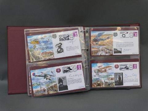 Three cover albums relating to the Boer War, WWI or WWII, many signed