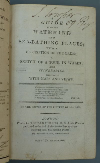 [John Feltham] A Guide to all the Watering and Sea-Bathing Places with a Description of The Lakes, A Sketch of a Tour in Wales and Itineraries with Maps and Views (some folding) London Richard Phillips (c1803) full tree calf binding with gilt bands, devices and lettering on spine