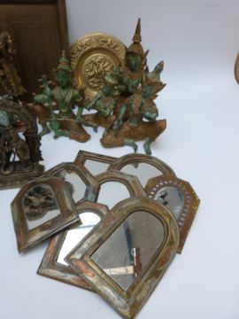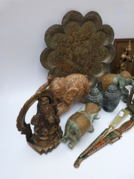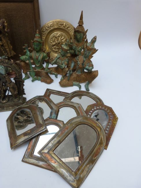 A bronze statuettes of Ganesh, Shiva and other gods, Thai brass figures and elephants, trays, mirrors etc