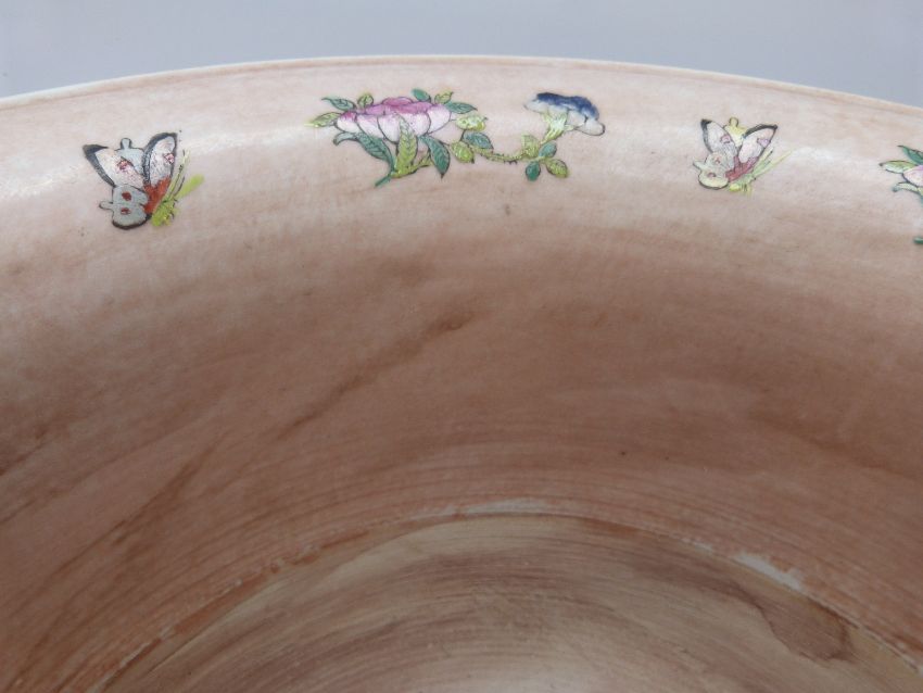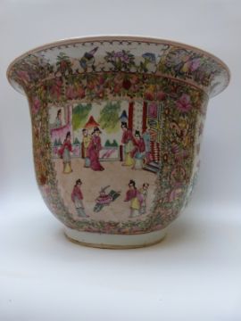 A large famille rose plant pot or jardiniere, 47cm diameter, 33 cm tall