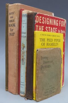 Nos Enfants by Anatole France illustrated by M. B. de Monvel, colour pictorial boards, Pierrot Robinson black and white plates and illustrated boards, L'Enfant Prodigue illustrated and with colour boards, A Boys & Girls Book for 1937 and Designing for the Stage (7)