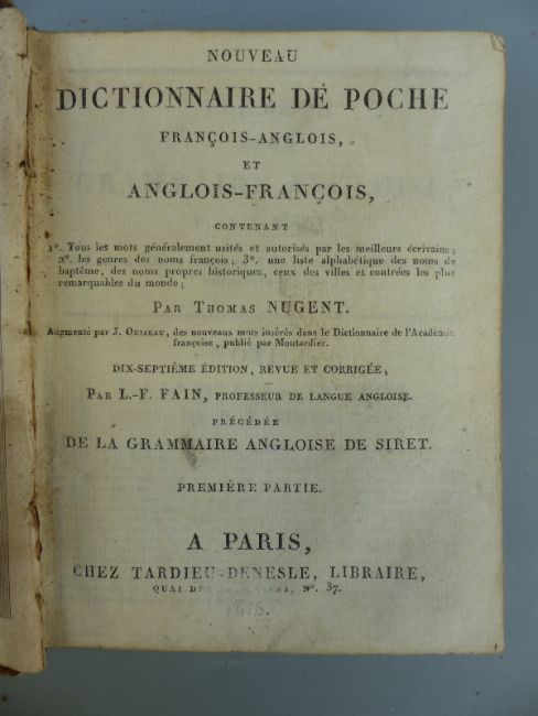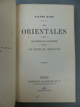 Recreations Francaises dans une Famille Anglaise by Mme Defroux 1818 with Nouveau Dictionnaire De Poche 1818 C Lenient La Satire en France and Les Orientales by Victor Hugo 1873, full leather decorated gilt spine, Correspondance de Louis Racine 1858 and other similar