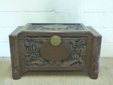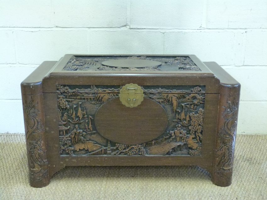A Chinese carved camphorwood chest
