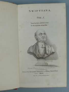 [Jonathan Swift] Swiftiana printed for Richard Phillips 1804 with engraved title pages in half red leather marbled boards with raised bands & gilt titles
