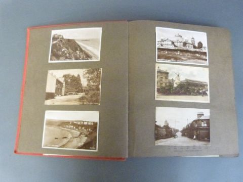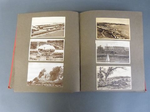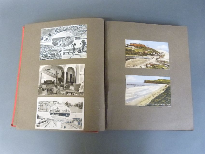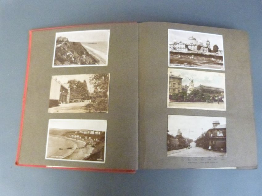 Three albums of postcards including Isle of Man, Skegness, Harrogate, Great Yarmouth, shipping including Lusitania, Lancaster, etc