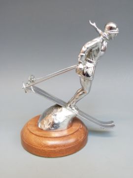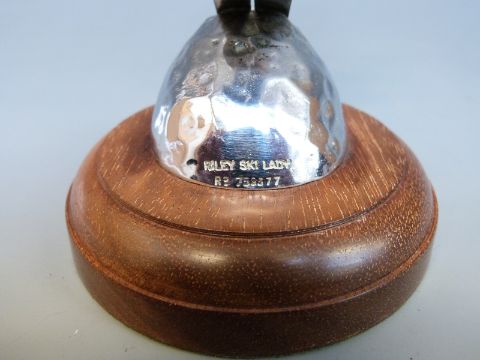 A skiing lady car mascot, marked to base Riley Ski Lady Rd 759377, height including base 14.5cm
