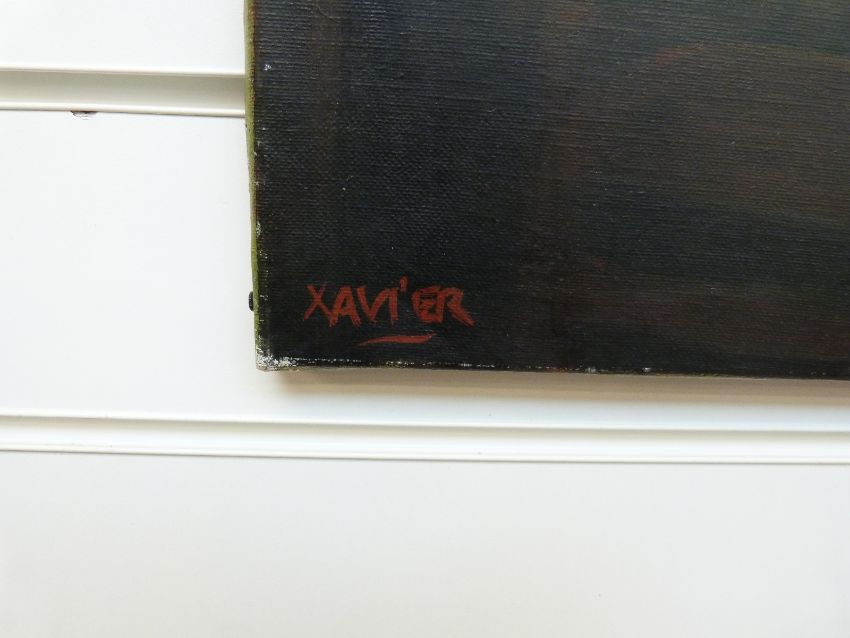 Xavier oil on canvas of men playing cards, signed lower left, 50cm x 65cm