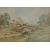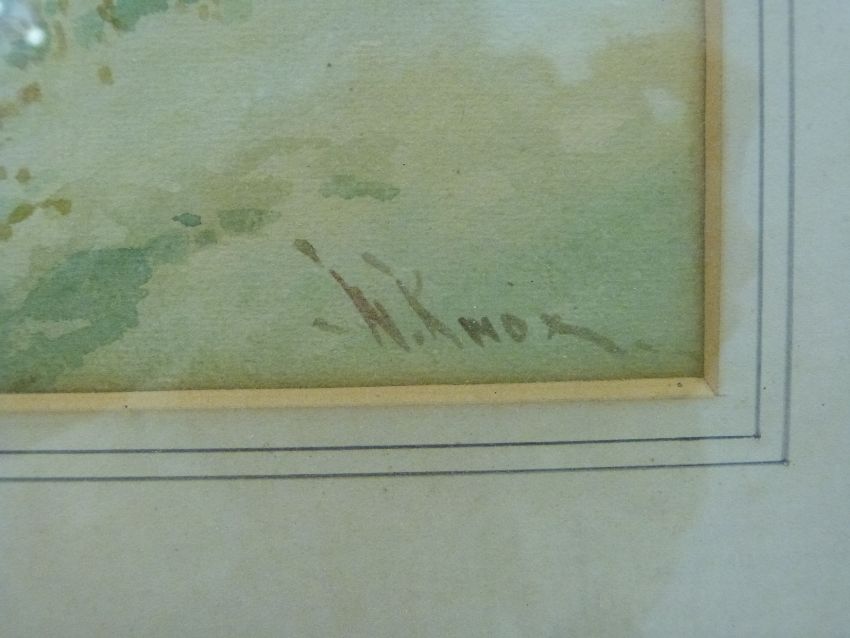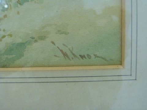 W Knox RBA Cornish scene, a punt passing under a bridge with cottage beyond, signed lower right, 25 x 36cm