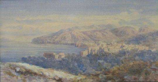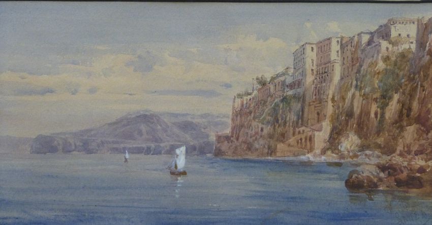 A pair of 19thC Continental watercolours, probably Bay of Naples, both signed indistinctly Sanza lower right, each 15cm x 27cm