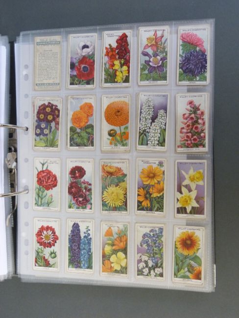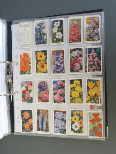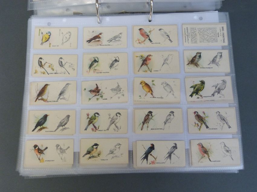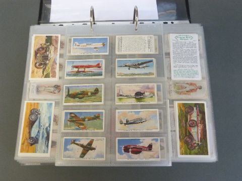 A collector's folder containing a large collection of cigarette cards, around thirty nine sets in all, includes Gallagher, Wills etc various subjects including aircraft, motor cars, lucky charms, footballers etc