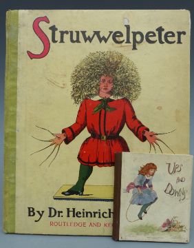Dr. Hoffmann's Struwwelpeter illustrated in glazed pictorial boards with Ups And Downs (miniature) children's book Ernest Nister (c1900)