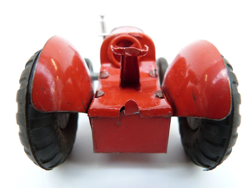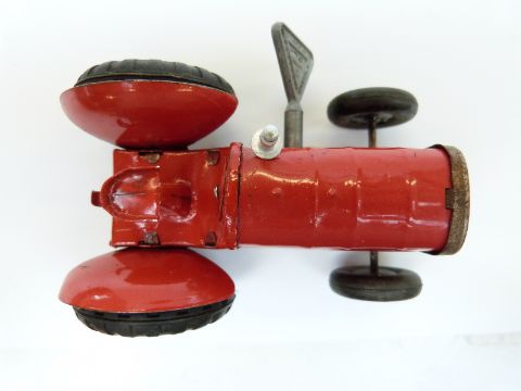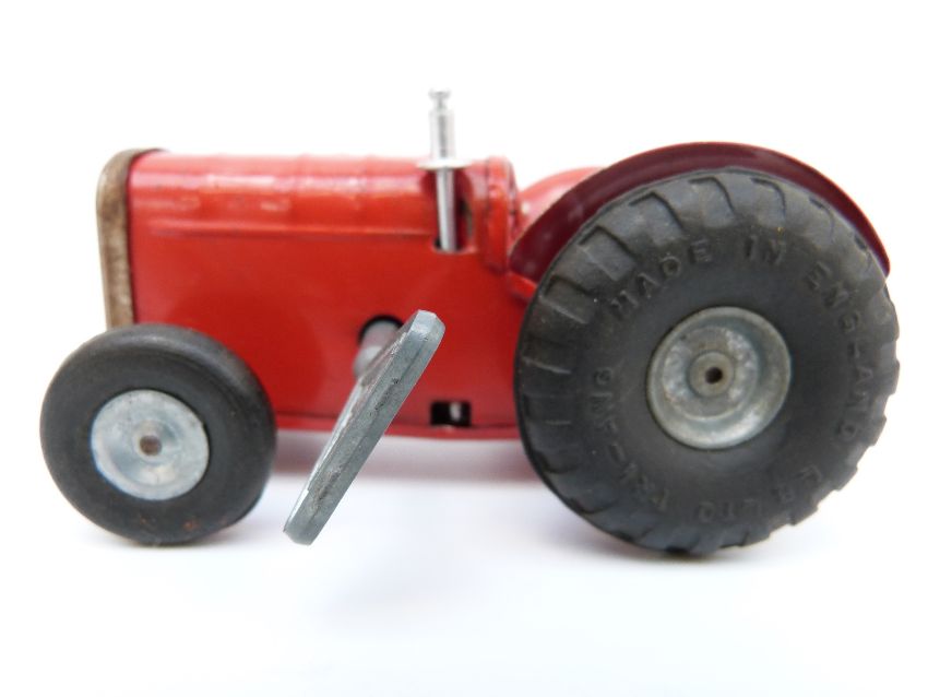 Tri-ang Minic clockwork tinplate Tractor with red body, black tyres and original box