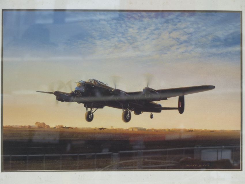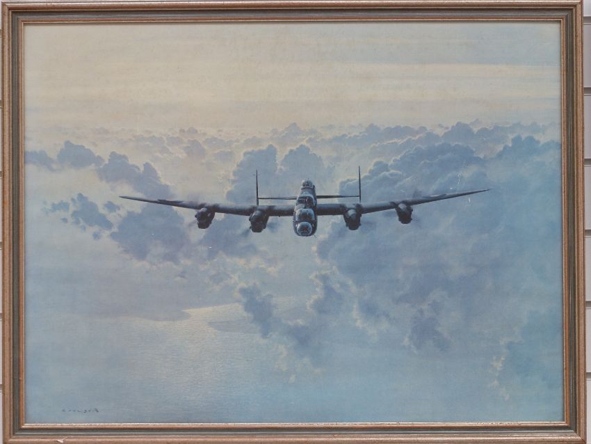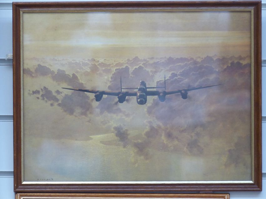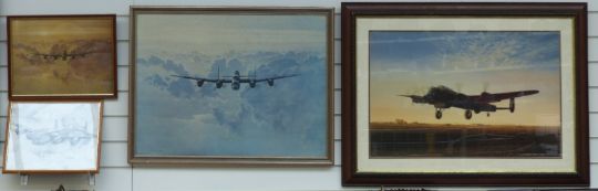 Three Coulson prints of Lancasters and a pencil drawing of a Lancaster