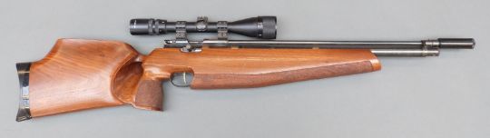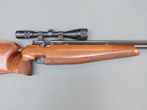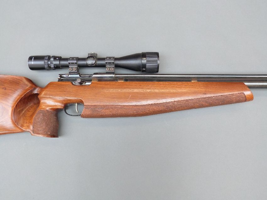Titan / Falcon Field .177 target air rifle with adjustable trigger, chequered grip, shaped stock, sound moderator and Bushmaster 4x12x40 scope, NVSN.
