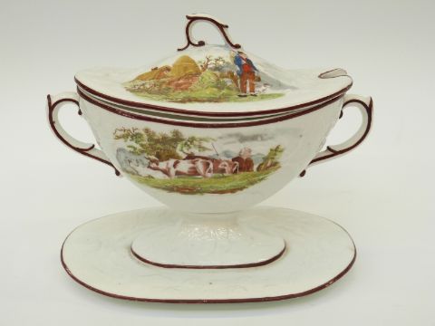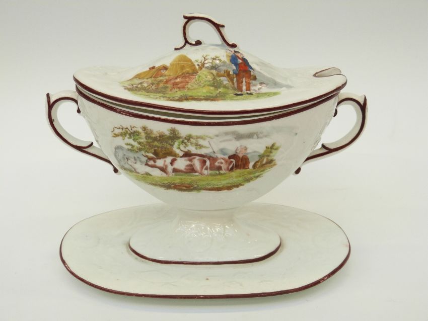 An unusual colour printed early 19thC tureen and cover by Mayer and Newbold