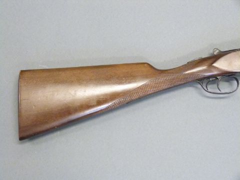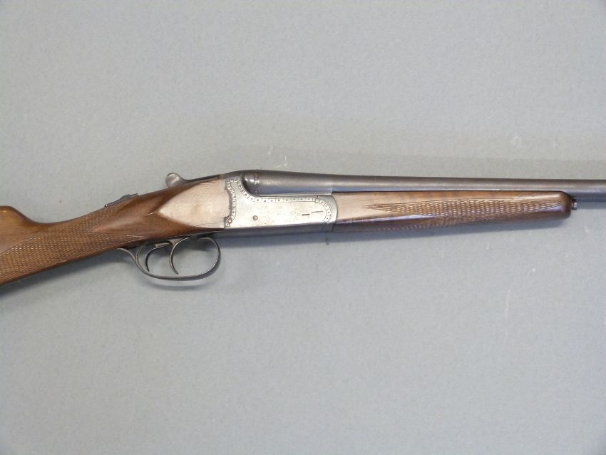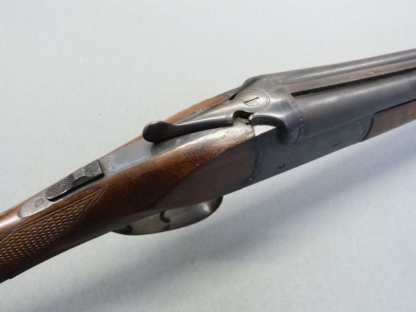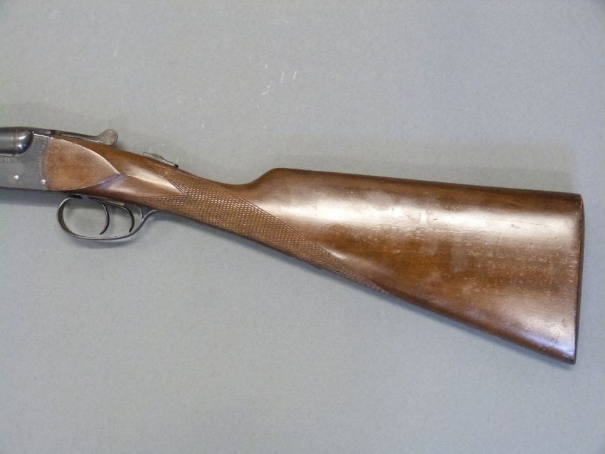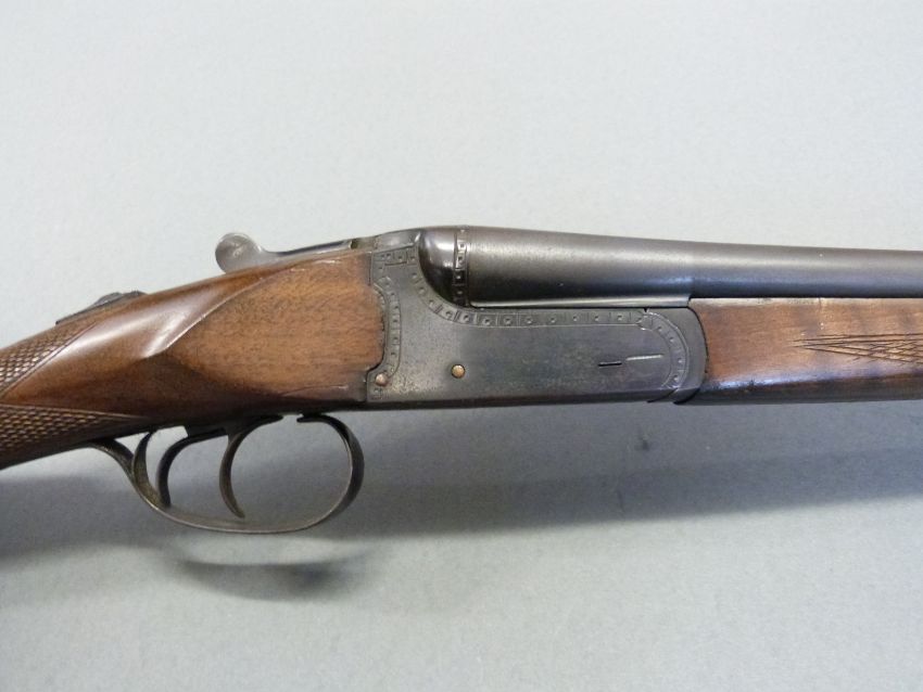 Sabel .410 side by side shotgun with border engraved lock, top plate and underside, chequered grip and forend, double trigger and 26" barrels, overall length 109.5cm, length of pull 36.5cm, serial number 72479. PLEASE NOTE THAT A VALID RELEVANT FIREARMS/SHOTGUN CERTIFICATE IS REQUIRED TO HANDLE/PURCHASE THIS ITEM.