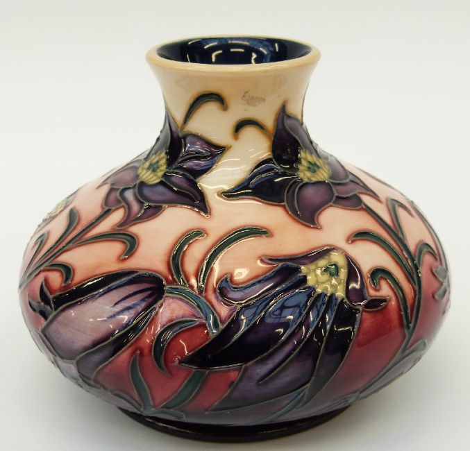 Moorcroft squat vase in Pulsatilla pattern, 12cm tall