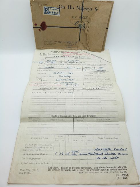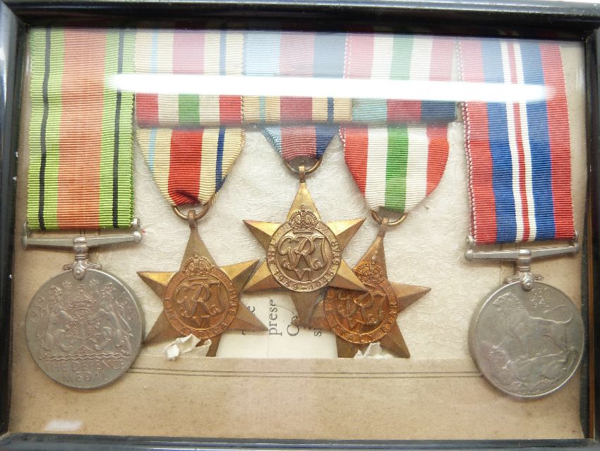 WWII Royal Marines medals with service record of Wilfred Webb and pocket diary dated 1942, Africa Star, Italy Star, 1939 / 1945 Star, War Medal and Defence Medal