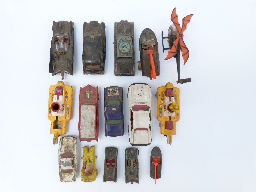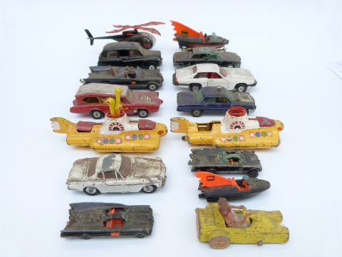 Fifteen Corgi Toys diecast model novelty, film and TV related vehicles including Batmobile, Batboat, Batcopter, Magic Roundabout, The Beatles Yellow Submarine, Green Hornet Black Beauty, Man From U.N.C.L.E Oldsmobile Super 88 etc