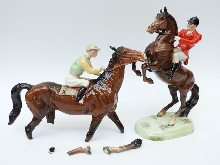 Beswick model of a walking horse and jockey and a Beswick Rearing Huntsman no 868