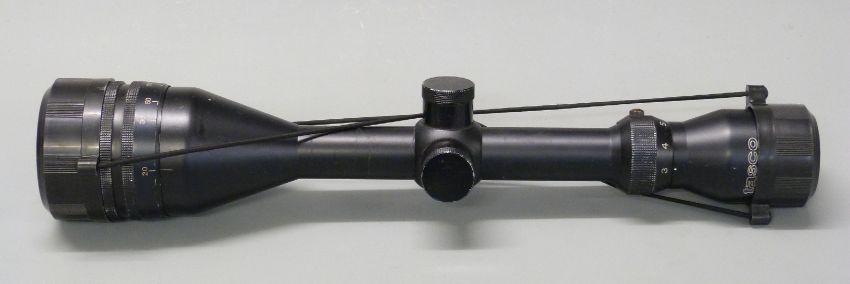 Tasco AG3-9x50WA rifle scope with lens covers.