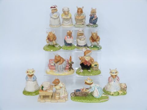 Fourteen Royal Doulton Brambly Hedge figures including Lady Woodmouse, Heading Home, Dusty's Bun etc, with 8 boxes