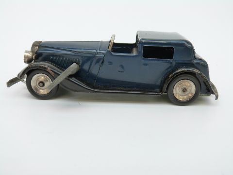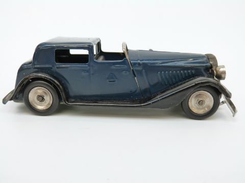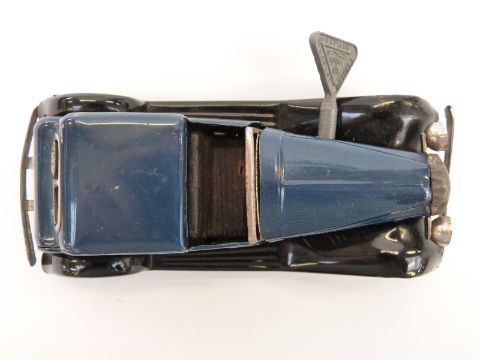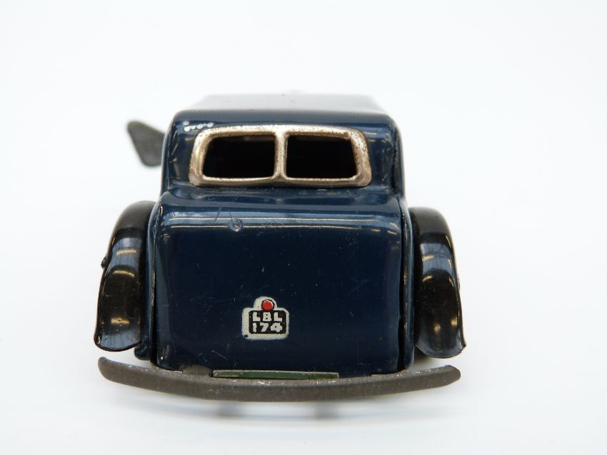 Tri-ang Minic clockwork tinplate Vauxhall Town car with blue and black body and original key