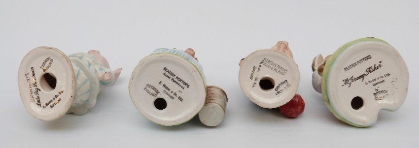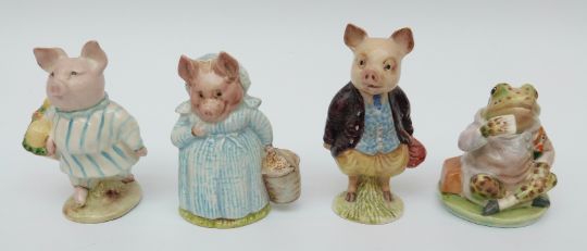 Four Beswick Beatrix Potter figures Mr Jeremy Fisher, Little Pig Robinson, Pigling Bland, and Aunt Pettitoes, all with gold oval BP2 backstamps