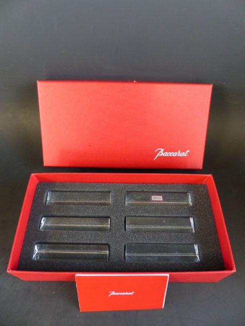 A set of six Baccarat glass knife rests, in original box