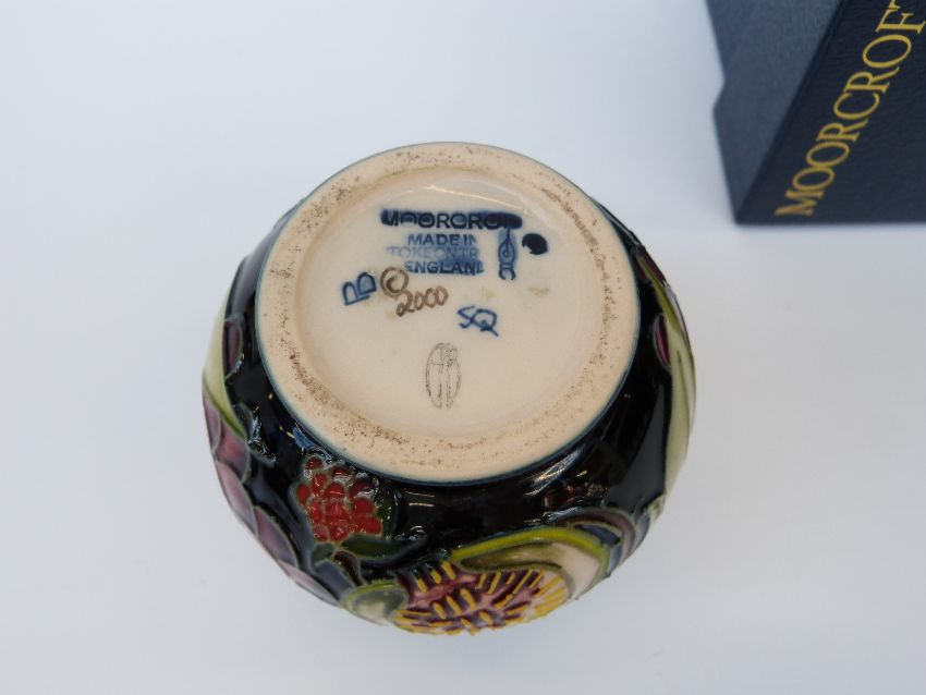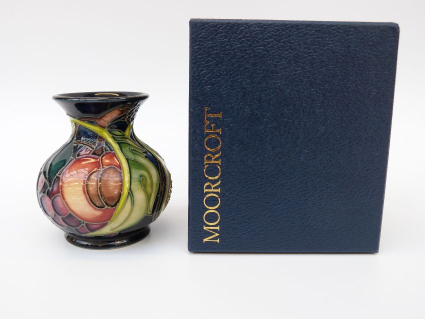 Moorcroft vase of squat form in the Queen's Choice pattern, 9cm tall, in original box